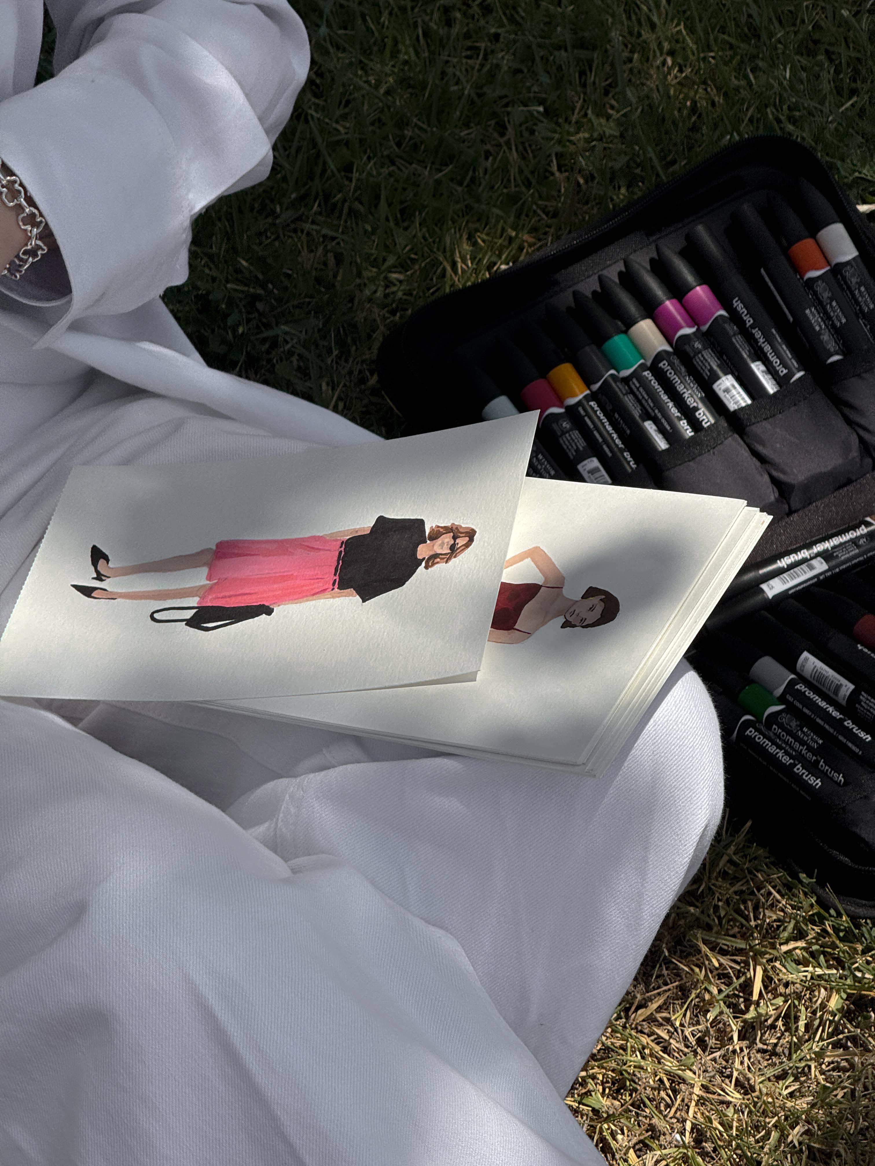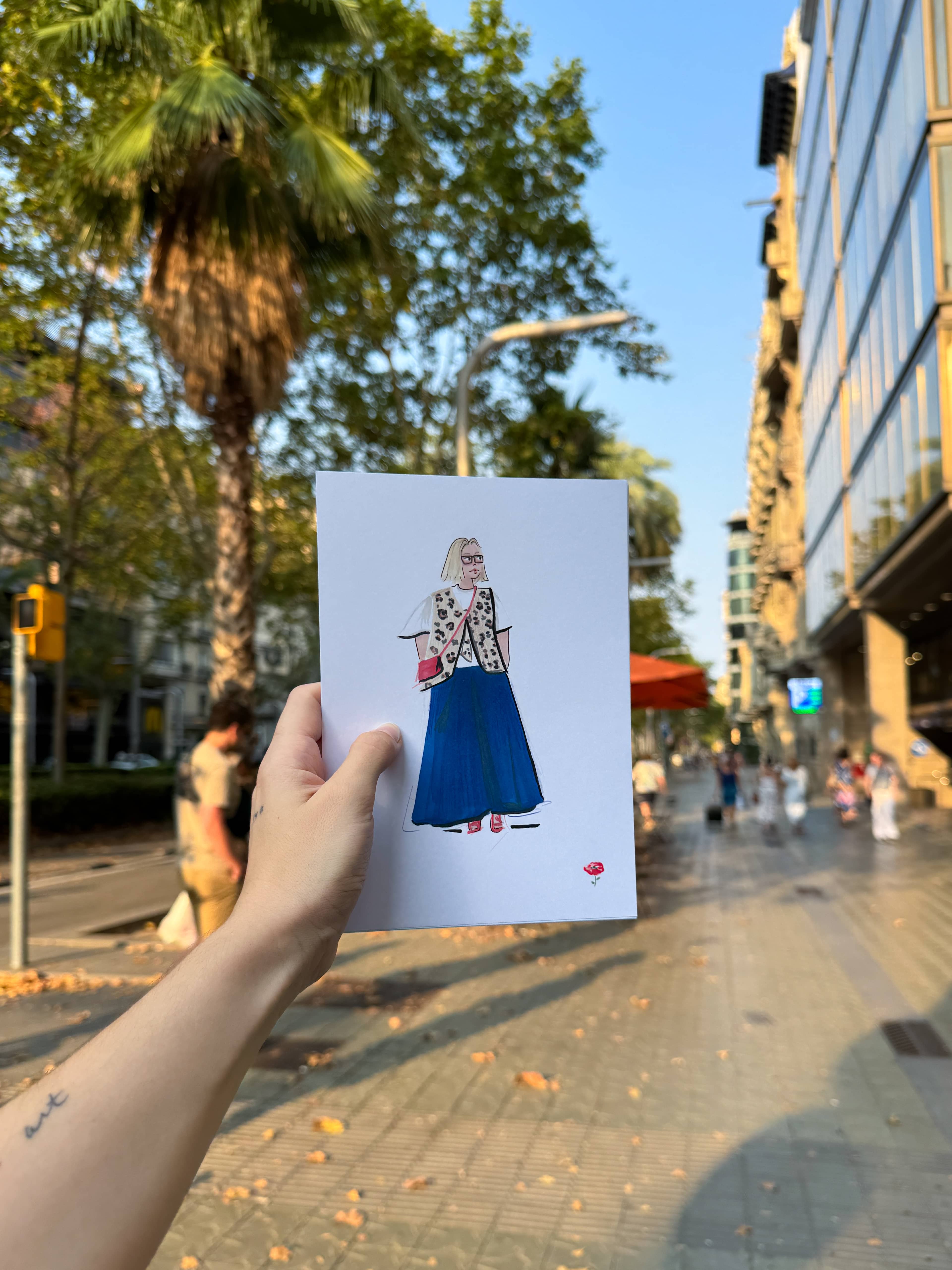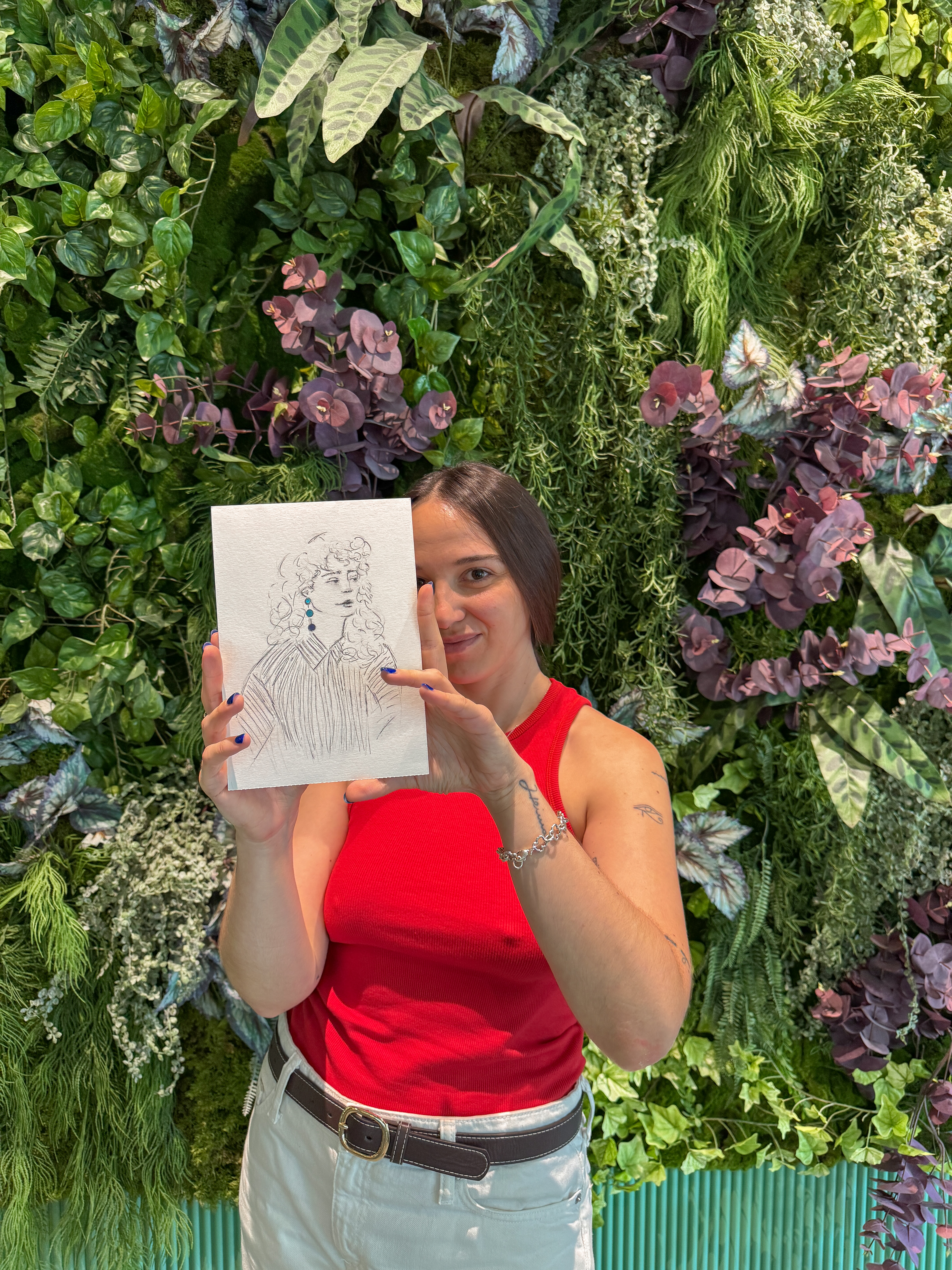 En directo, con papel, colores y alma. Pinto personas, atuendos y gestos que perduren en la memoria. En 10 - 15 minutos creo retratos rápidos y únicos para cada invitado, que se llevan a casa como recuerdo de un día irrepetible.